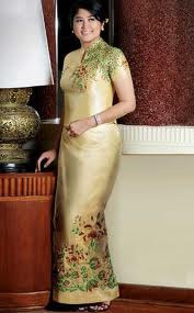 ၿမန္မာ၀တ္စံုက ခႏၶာကိုယ္ပိန္ပါးခ်ပ္ကပ္တဲ႔သူနဲ႔ ပိုလိုက္ဖက္ပါတယ္တဲ႔..။ ကၽြန္မအၿမင္ကေတာ႔ ခႏၶာကိုယ္ ပိန္ပိန္၀၀ အားလံုးနဲ႔လိုက္ဖက္တယ္လို႕ၿမင္ပါတယ္..။ ကၽြန္မလည္းပိန္ပိန္ပါးပါးထဲမွာမပါပါဘူး..။ ဒါေပမယ္႔၀တ္ခ်င္တယ္ ..၊ ၾကိဳက္တယ္..။ ၀တ္ထားရင္းနဲ႔ လံုၿခံဳတယ္..၊ သိမ္ေမြ႕တယ္..၊ ၿမန္မာဆန္တယ္..၊ က်က္သေရေတာင္နည္းနည္းရွိသြားတယ္လို႔..ခံစားမိတယ္..။ အဆင္႔အတန္းတစ္မ်ိဴးကိုလည္းၿပတယ္လို႔ ထင္မိတယ္...။ (ဟုတ္ဟုတ္မဟုတ္ဟုတ္ ကိုယ္ထင္ ခုတင္ေၿခေလးေခ်ာင္းေပါ႔ေနာ္..။ မေန႔ညကမွ တီခ်မ္းဘေလာ႔ဖတ္ၿပီး သူ႕စာသားကူးခ်ထားတာ..။ ဟိဟိ..။)